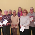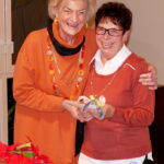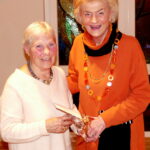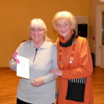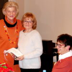 Anschließend fanden Ehrungen für jahrzehntelange Treue und Mitarbeit statt. Dazu gab es jeweils ein kleines modisches Geschenk. Als Gründungsmitglied wurde Reinholde Stenger mit einer Dankurkunde gewürdigt und auch die Vorsitzende selbst konnte auf 20-jährige Mitgliedschaft zurückblicken; die 2. Vorsitzende Erika Hein überreichte die Urkunde und ein Geschenk.